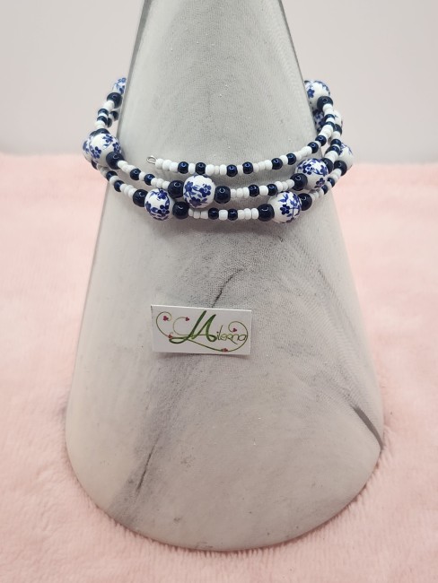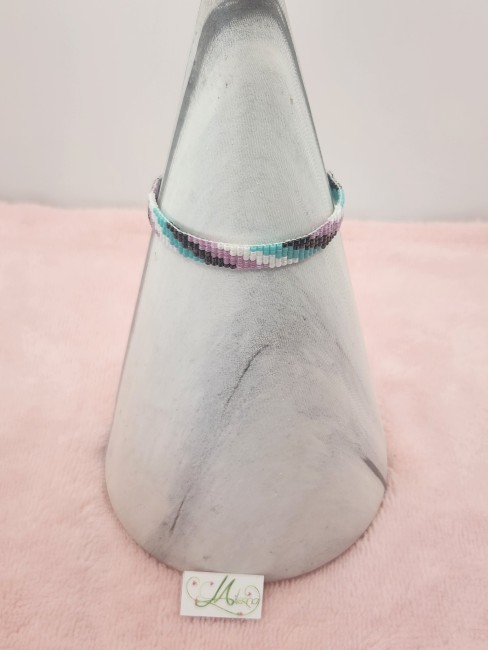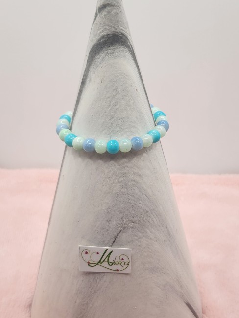 Bracelet en perles ton de bleu turquoise, gris et blanc