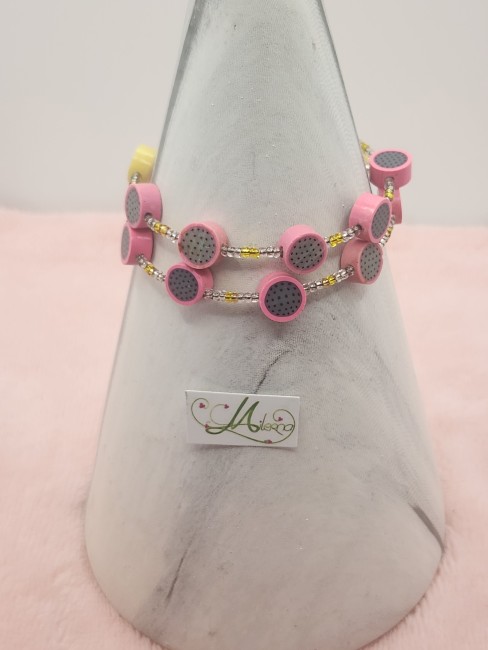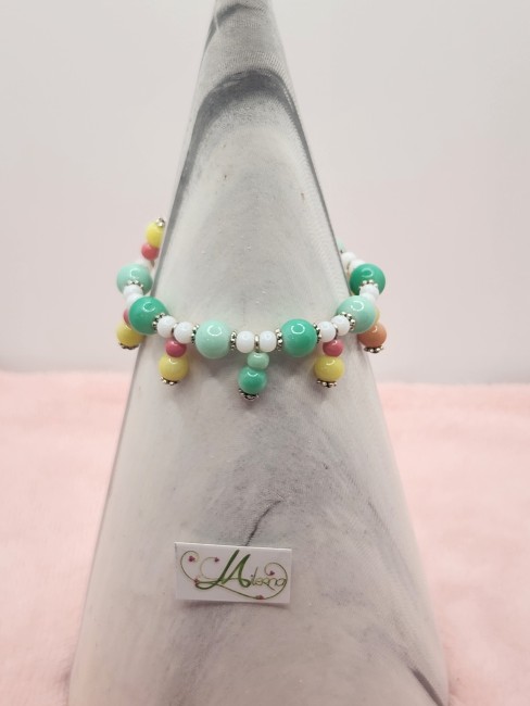 Bracelet enfant/ado, perles tons de rose, jaune, vert et blanc
