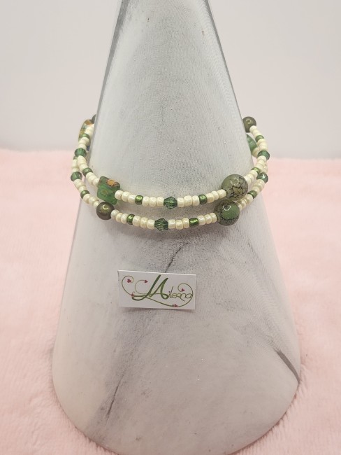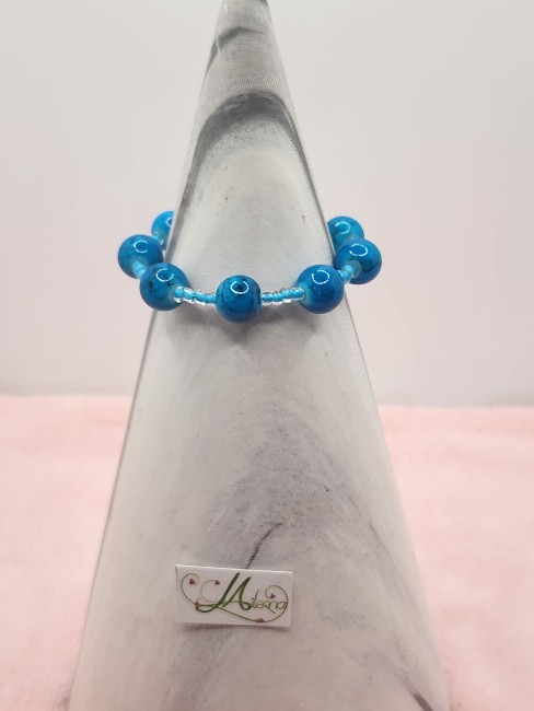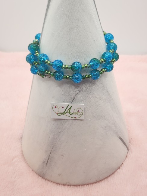 Bracelet en perles coloris bleu/vert, perles de rocailles verte