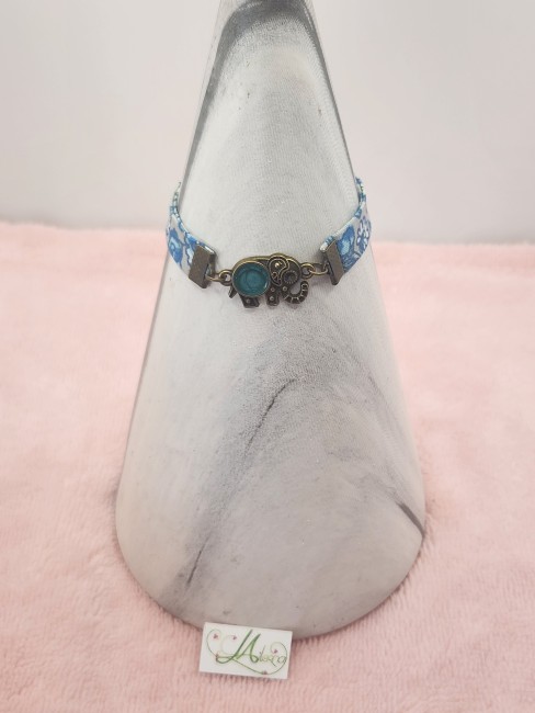 Bracelet Liberty fleurs bleues + breloque éléphant
