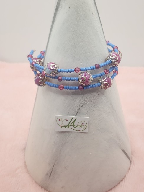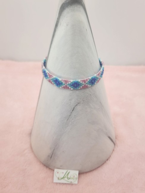 Bracelet en perles ton de bleu, perles de rocaille corail