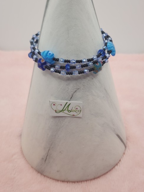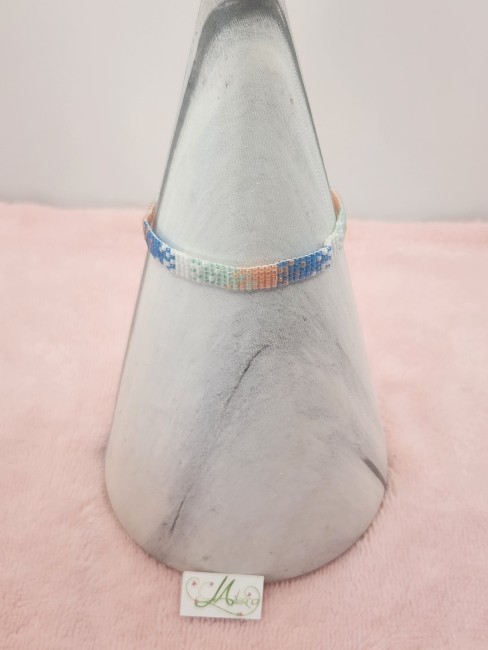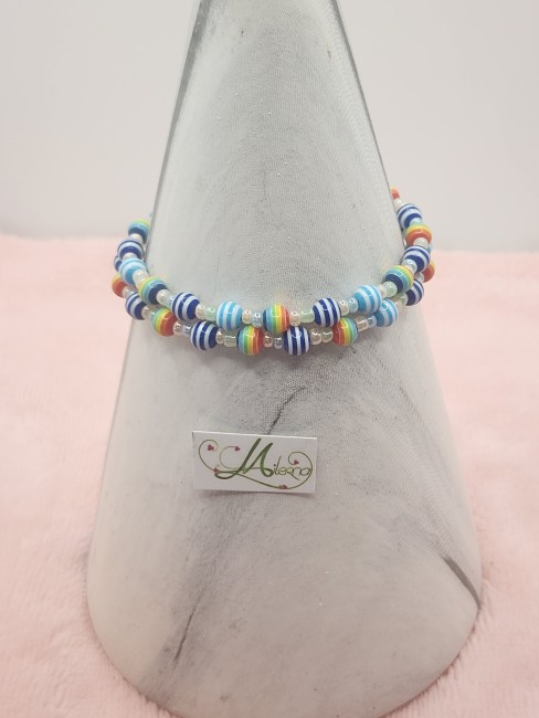Bracelet en perles rayées, coloris bleu et arc en ciel
