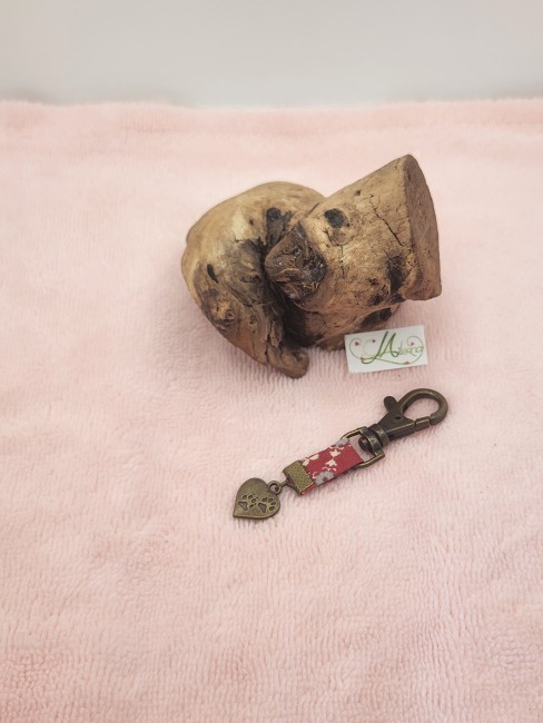 Porte clefs "cœur patte de chat" en métal fantaisie bronze et tissu liberty rouge