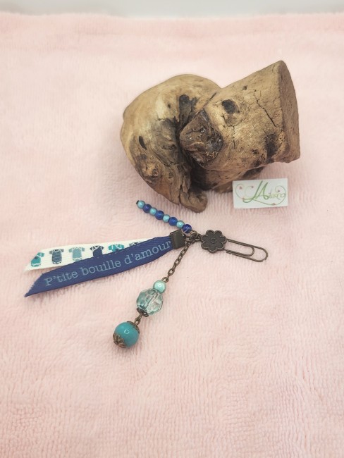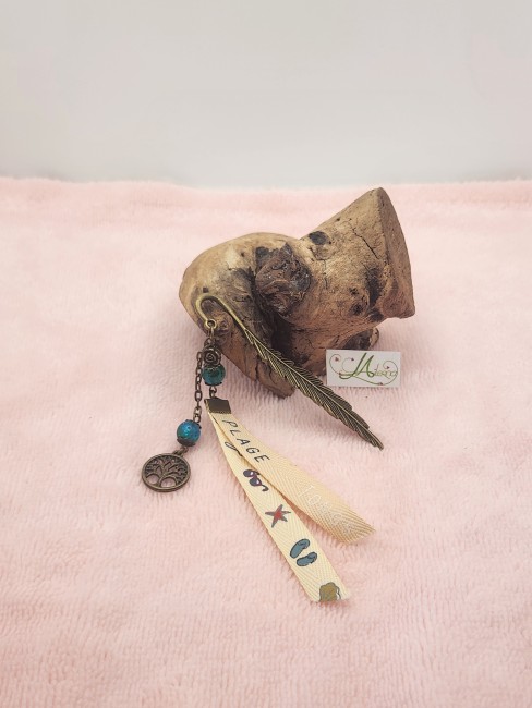 Marque page "perles bleues et arbre de vie en bronze et rubans "plage/Tongs et motifs"