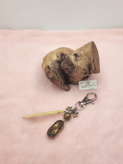Bijou de sac avec pendentif et perle en polymère