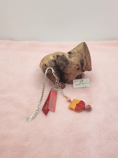 Marque page "papillon en bronze", perles bleues et rubans" oiseaux et No stress"