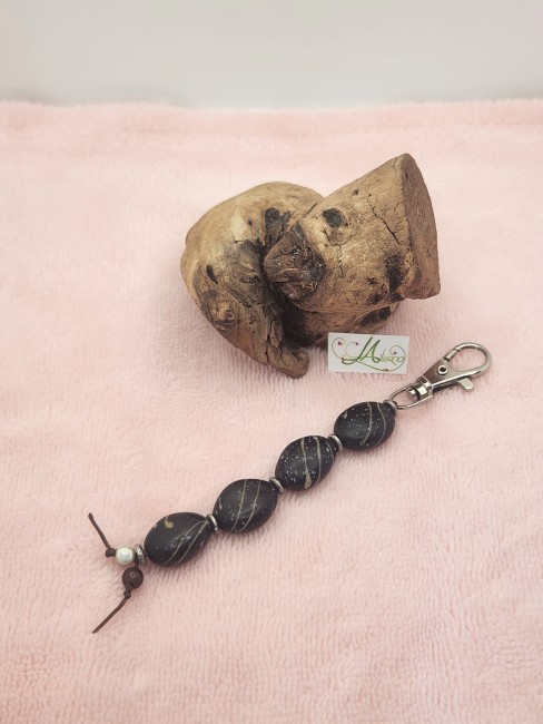 Porte clefs 4 perles marron en céramique