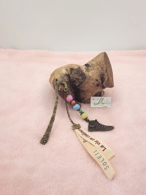 Marque page "basket et perles de couleur et rubans "soleil/plage et La vie en couleurs"